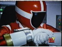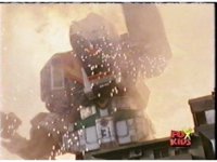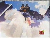 Supertrain Megazord punches its left fist forth, firing missiles from its fist. |