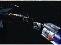 Supertrain Megazord punches its right arm forth, firing blasts from the turbine. |