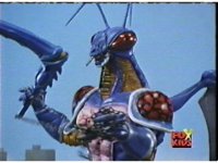 Mantevil approaches Omega Megazord, scythe in hand. |