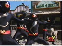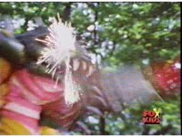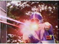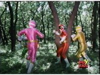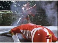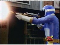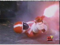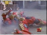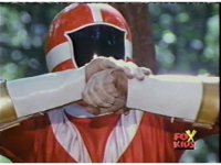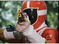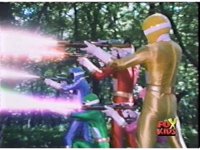 Red aims his Thermo Blaster Booster Mode and nod-talks, then all five fire their weapons at Freezard, bursting him, until he falls over and explodes, to which they turn their backs to him and pose. |