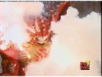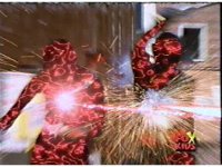 Fades in from black; cuts prior shots of each Demon approaching. Cuts follow-ups of Red firing Cycle's guns sparkily at him. |