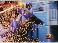 The Rangers are shaken up in their cockpits, Lightspeed Megazord spark burst some more. |