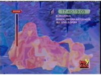 Red gets up and readies a fist, as we pan down close on Freezard's belly, showing four humans' infrared heat patterns within, as Red reacts. |