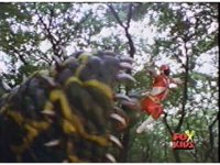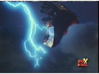 First shot is recycled, per source. Cuts follow-up of Olympius blasting Red; then US replaces Red vs Freezard, due to his impaling the monster. |