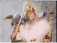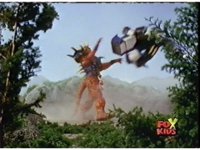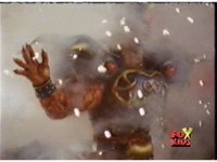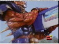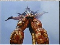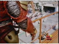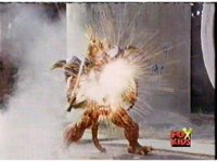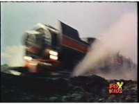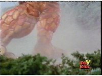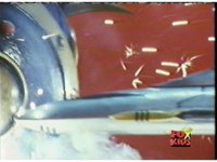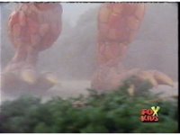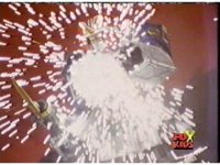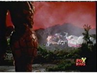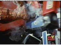 Shots of MS smashing through mountain are cut between last two shots. Also cuts follow-ups of MS firing shield on Demon. |