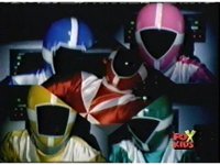 The Rangers then lower the Spectra Blast, which flies away from them, flashing a V. |