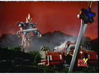 Recycled, per source. Cuts follow-ups of others, also cuts follow-up Zords driving off and formation. |