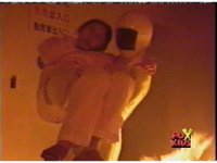 Blue carries a Japanese woman to safety, while Pink rolls a Japanese woman to safety, and Yellow carries a Japanese woman to safety. Red heads down a hall, breaks into a room, and saves a Japanese man. |