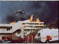 Aero Rescue hovers in above the burning building again amid the acrid smoke. |