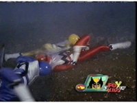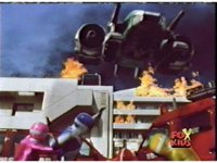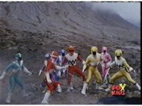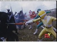 US montage of Sentai footage; Trims second shot to remove unmorphed faces. |