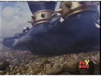 Electricity and fireball added; Cuts follow-up of Rangers falling into crevice; Video version followed up with a shot of Triskull leaving, which is cut from the TV version. |