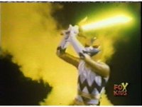 Yellow Galaxy Ranger slashes her charged Saber forth. |
