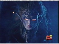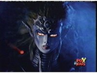 The purple energy forms into the giant Trakeena monster creature thing. |