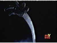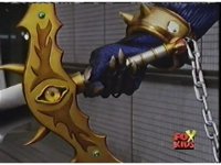 Cuts follow-ups of Triskull tossing bloody sword before dying. |