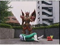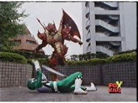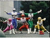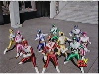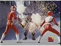US montage of Sentai footage; as such, Red, Blue & Yellow are recycled; and Damon got a whole lot lighter. |