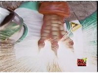 Max Solarzord kicks Trakeena sparkily, but does no harm, causing it to fall down. |
