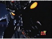 Cuts follow-ups of it stepping forth and impaling her with energy beams. |