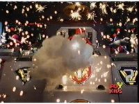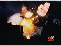 Cuts follow-ups of Demons & Rangers reacting, and of the building exploding. |