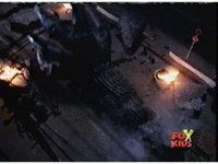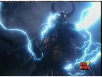 Cuts prior shot of Demons rallying around Triskull; Cuts follow-ups of Triskull reviving and killing himself. |