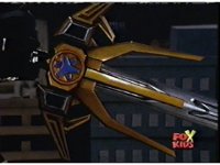 Omega Megazord fires its Missile Tip from its Spear down a hyperspace tunnel. |