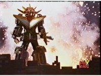 Cuts follow-up of cockpit glowing; and an additional shot of the whole Megazord glowing. |