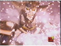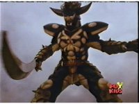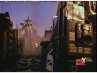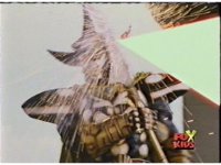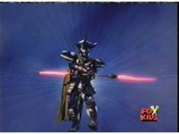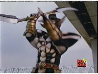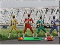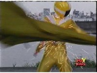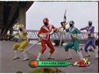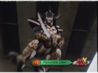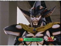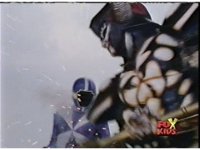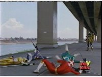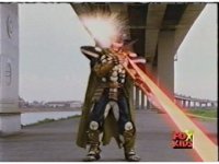 The four Rangers ready their V-Lancers and charge in, prompting Memorase to ready his own. Red slashes at him as he whips his cape up, leaving only his cape behind as he vanishes. |