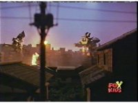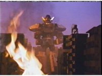 Zoom in on Lightspeed Solarzord, watching the fires burn, and lowering weapons. |