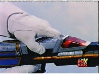 Blue Ranger inserts the Battle Booster into his Thermo Blaster. |
