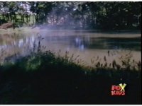 The camera pans right across a pond. |