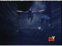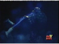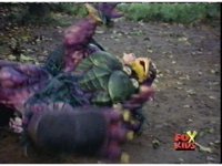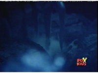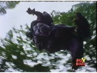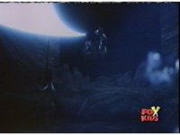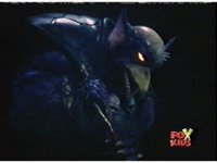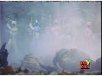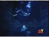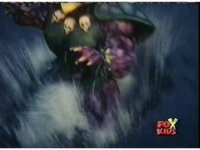 Blue goes round and round with Aquafiend underwater, while above, the surface bubbles, his teammates watching, Green nod-talking to the girls, who respond and all are about to jump in, when they're grabbed by Batlings, and the area quakes. |