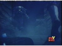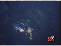 Blue swims underwater, spots Neptune's trident, floats in place before it, then gets grabbed by Aquafiend from behind, to which he struggles. |