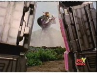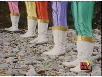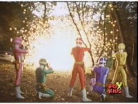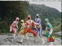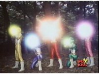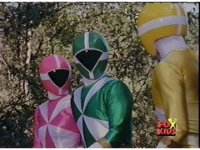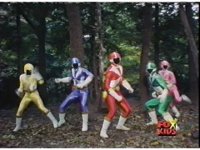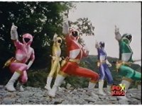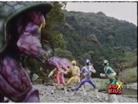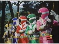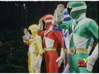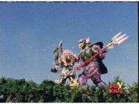 The Lightspeed Rangers do their full team posing for the first time, Batlings charge forth, so they salute and rush forth after them. |