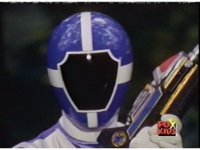 Blue Lightspeed activates his Mega Battle armor. |