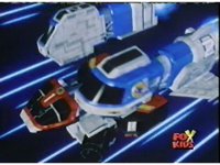 All five Omegazords fly out from their Rail Rescue positions and into space. |