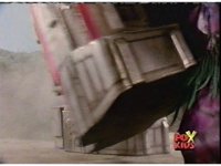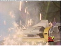 Omega Megazord fires its Missile Tip from its Spear down a hyperspace tunnel. |