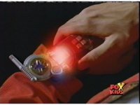 Finished with the Batlings, the Rangers turn their attention to Arachnor, who appears ready to fight, when Red summons into his wrist. |
