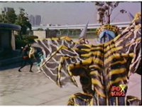 Arachnor leaps off of her web, lands on the ground, and we see her view of the Rangers fighting Batlings, registering the Baton and Blasters used by Red and Green respectively. |
