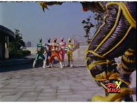 Cuts follow-up Ranger shots. Cuts all usable later footage, including Megazord battle. |