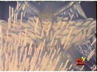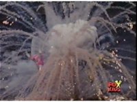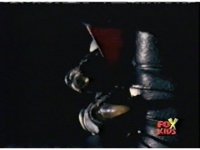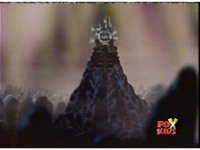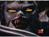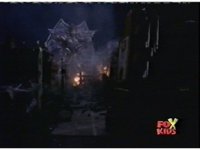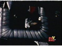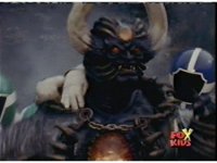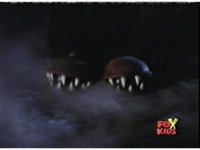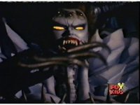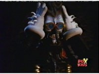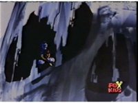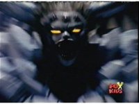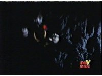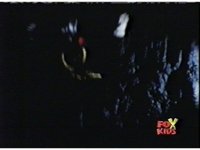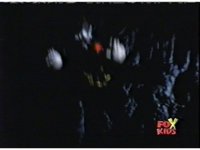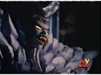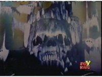 The camera races straight on into Skull Cavern, stopping suddenly up close to the skull face, Jinxer wandering around in the right eye socket. |