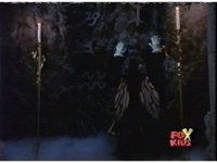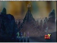 Another shot of the distant Skull Cavern, while within, Queen Bansheera talks and gestures. The Rangers react to the Skull Cavern once more, then Bansheera talks again. |