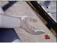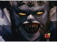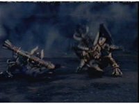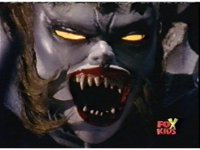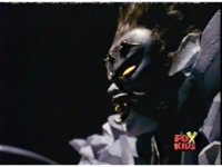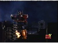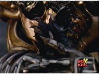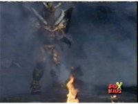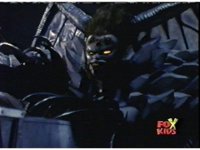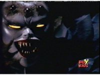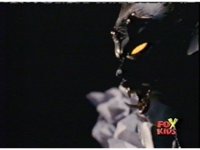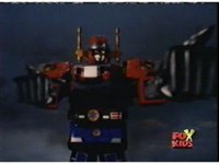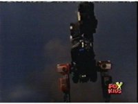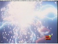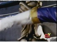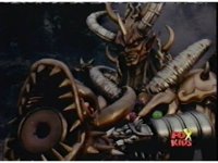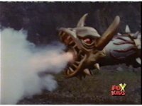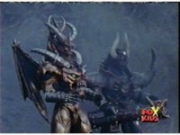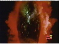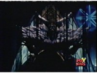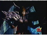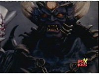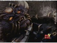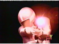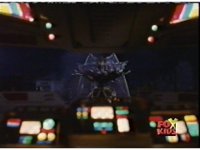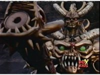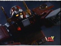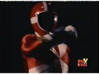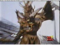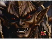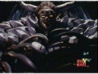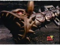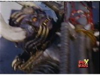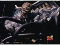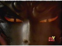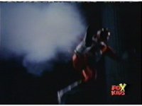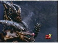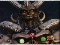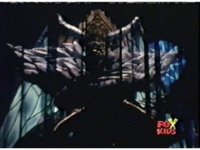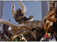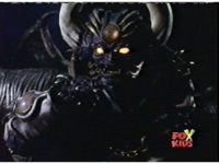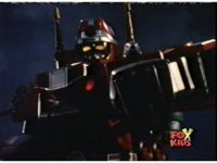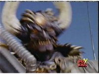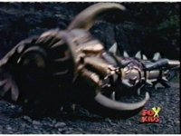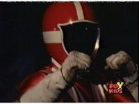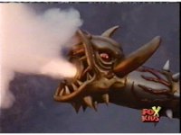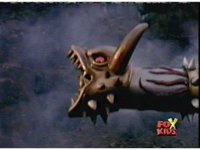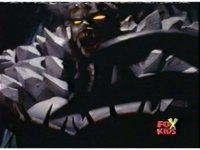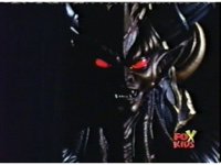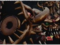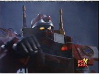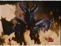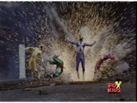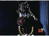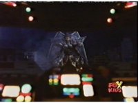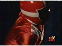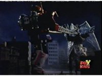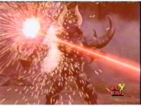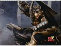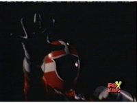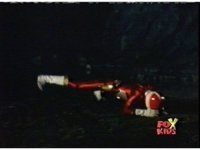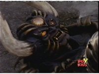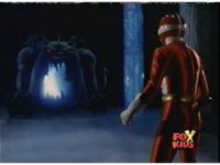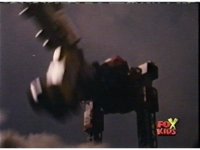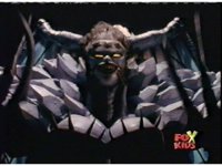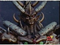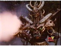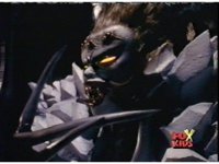 Queen Bansheera lowers her arms, Red nod-talks in response, then grips control, causing Lightspeed Megazord to raise its left arm, and fire its laser at her, bursting her, before she vanishes. |