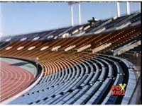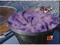 The Red Mobile Armored Vehicle flies into the stadium, and hovers above the portal entrance. |