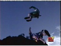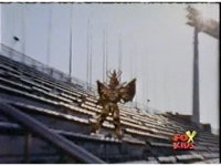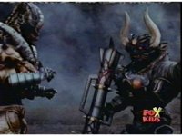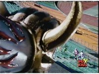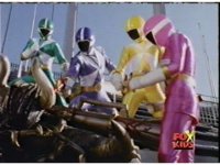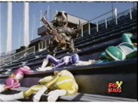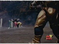 The four Rangers arrive in a stadium, glance around, talk, then up the stands, where Loki appears, some more talking, then he fires his bazooka. |
