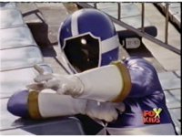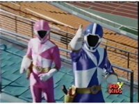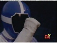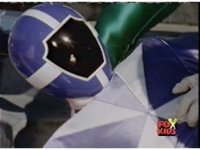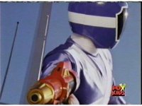 The Rangers fall unconscious, Loki approaches, points his bazooka at Blue, who suddenly knocks him over. |