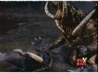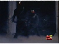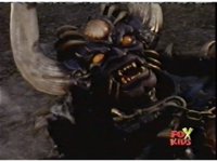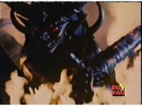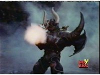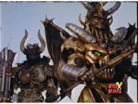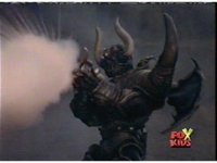 Loki prepares to battle, but Diabolico stops him, they talk for a little, the Rangers react, then Loki pushes Diabolico aside, aims his bazooka and blasts the Rangers with an explosion. |