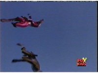 The four Rangers and two Demons fall through a portal in the sky into another dimension. |