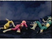 Red runs, sometimes in dramatic slow motion, as the Rangers gather around the downed Pink. |