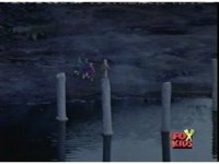 The four Rangers wander away from a pond in this strange new world. |