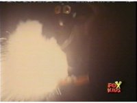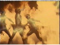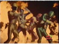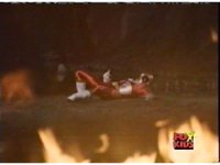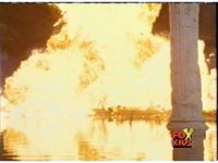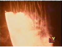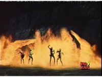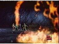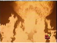 The Rangers talk, until the Diabolico explosion erupts, shooting a stream of fire over to them, engulfing them in flames, Queen Bansheera talking, as they agonize in the blaze. |