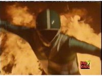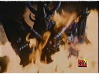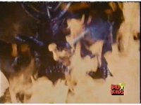 Diabolico talks to Red from amid the fire, Red defensive at first, then lowering his guard as he listens, until the flames rise and fully consume him spark-burstingly. |